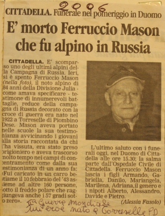 Qui sopra la testimonianza del registro del sacrario di Giavera del Montello (TV) laddove è sepolto, con tutti gli onori, ALFRED JOHN MASON soldato inglese della 1^ guerra mondiale .